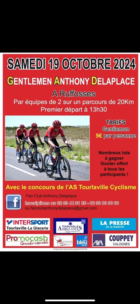 Le 19 octobre nos cyclos ont participé à Ruffosses à la Gentlemen Anthony Delaplace. Elle se déroulait par équipes de deux sur un parcours chronométré de 20 kms. Notre forte participation nous a permis de remporter la coupe du club le plus représenté. Félicitations à nos participants.