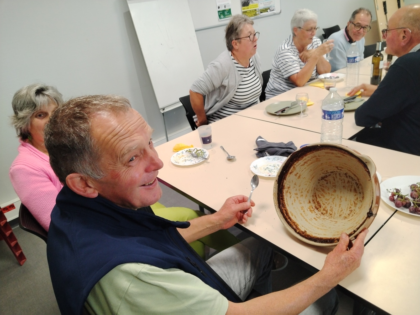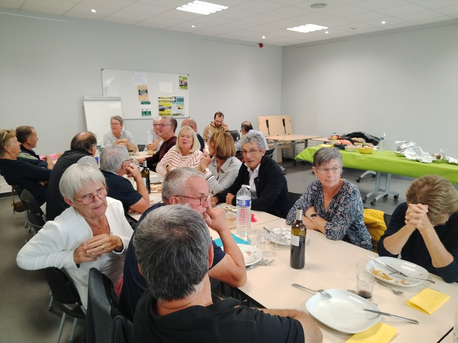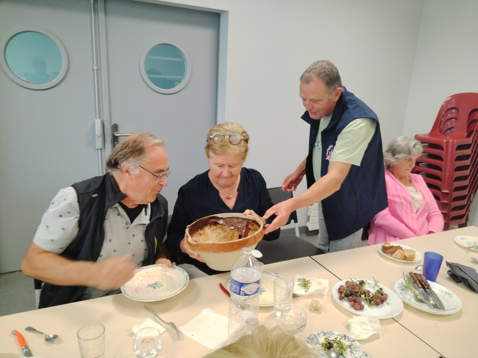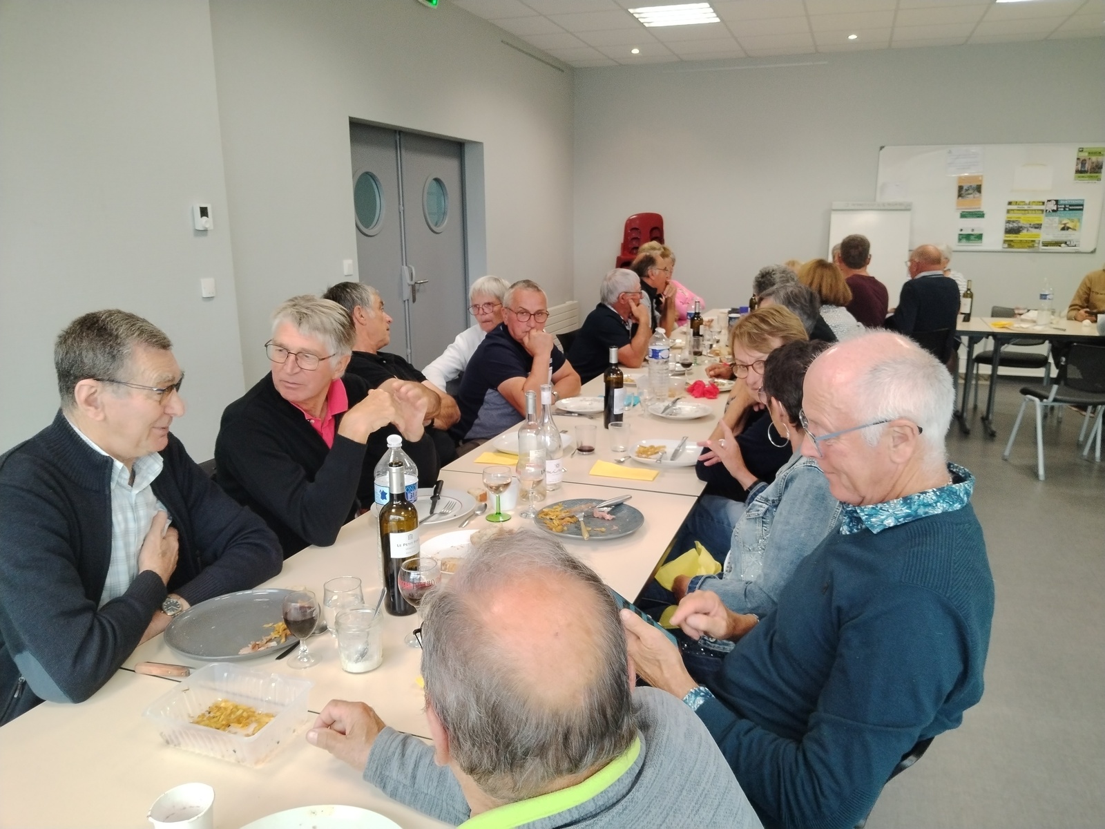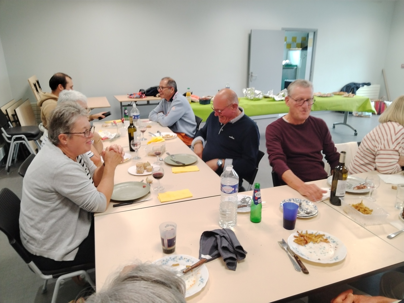 Le soleil devait être de la partie pour notre pique-nique du 21/09/2025, mais la pluie et le froid en a décidé autrement. Une salle nous a été prêtée par la commune de Montfarville que l'on remercie et ainsi recevoir les 30 adhérents à notre repas. Au menu, entrées et desserts cuisinés par les adhérents, gigot et frites en plat principal fourni par le club.